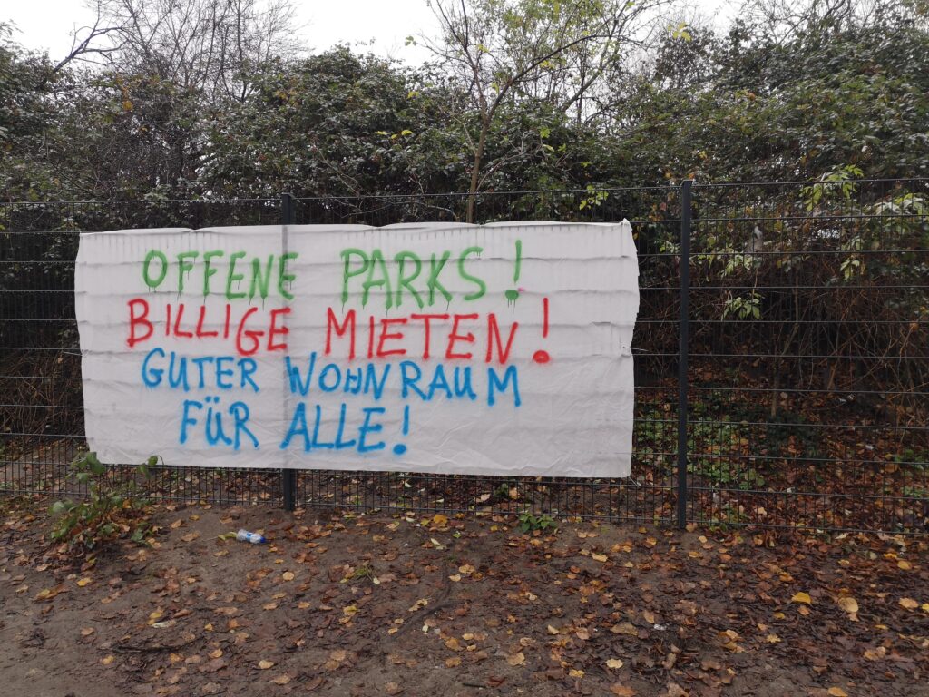 Der neue Görli Zaun eignet sich auch ausgezeichnet zum Anbringen von Transparenten. Vielleicht hängen wir zeitnah noch viel mehr Transpis dran? Wer weiss wie lange er noch steht… 🙂